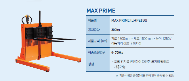 자동 레벨링 기능으로 자동상하조절장치로 적재점이 항상 허리 높이로 유지 되는 특허 제품입니다